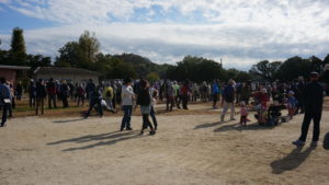 一斉にゴールを目指して皆で列をなして歩き出しました。道中には自治会の評議員の方々が誘導員として立っています。ご苦労様でした!