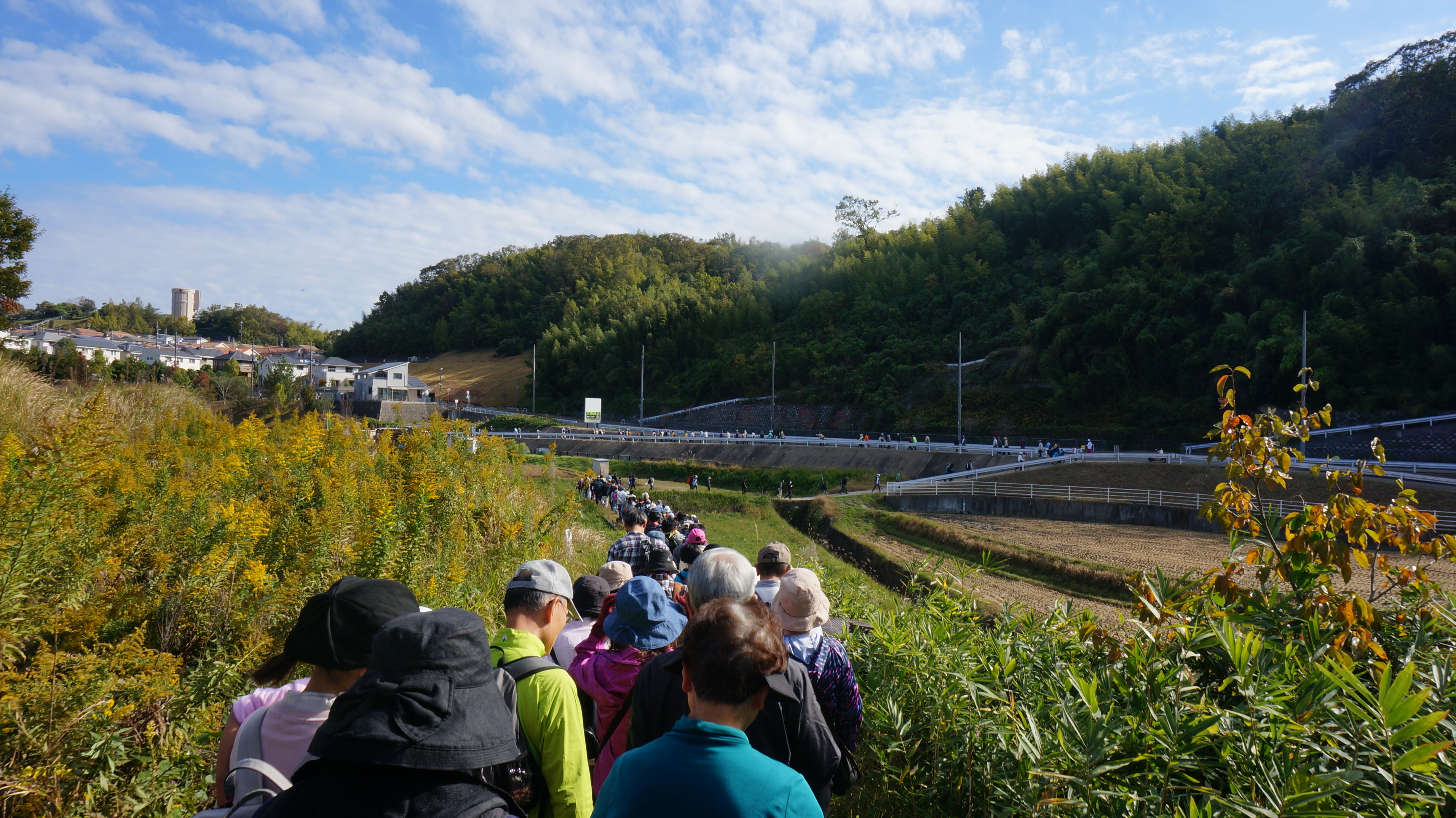 お年寄りから子どもまで多くの方々の参加です。行程は鹿ノ台運動公園からけいはんな記念公園までの約4km、朝の9時半スタート。