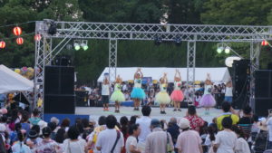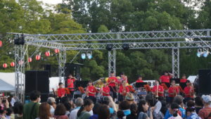 納涼祭の2日目も大盛況でした! 子どもみこし・大人みこしから始まり鹿中の吹奏楽部の演奏、ダンスやパフォーマンスや歌、いろいろなステージ