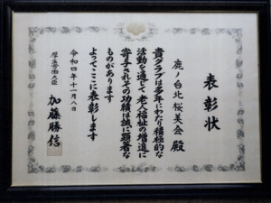 東京両国国技館で、天皇・皇后両陛下ご臨席のもと、鹿ノ台北桜美会が厚生労働大臣賞を受賞、表彰されました。 表彰状と記念盾