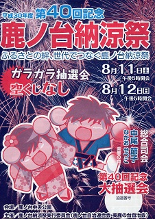 記念の第40回納涼祭開催日は、8/11(土)、8/12(日)の2日間に決まりました(2018/1/7)